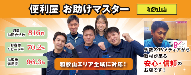 便利屋お助けマスター和歌山店は和歌山県内の全域に対応しております。「ここも大丈夫?」とお悩みなら必ずお役に立ちますので是非一度ご相談ください。